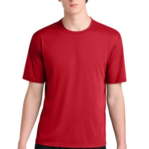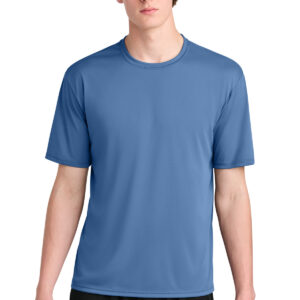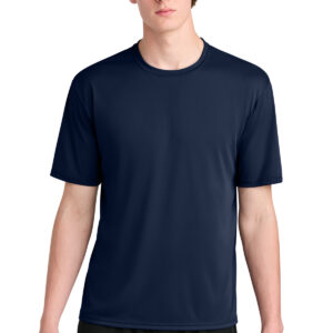 Lighter weight and faster wicking, this tee sets the bar for high performance with 4-way stretch and sun protection. 3.4-ounce, 100% performance polyester Moisture-wicking UPF rating of 50+ 4-way stretch Reinforced shoulder seams for durability Double-needle coverstitching on hem Tear-away label
