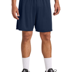 Perfect for a light jog or an intense workout, this performance short offers moisture wicking, stain release and snag resistance. 4-ounce, 100% recycled poly interlock Moisture-wicking Stain release Odor-resistant Snag-resistant UPF rating of 44+ 1.5-inch covered elastic waistband with interior drawcord 7-inch inseam