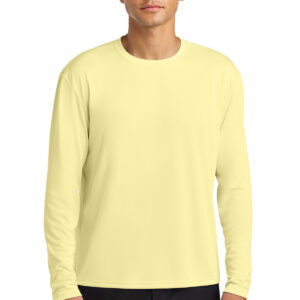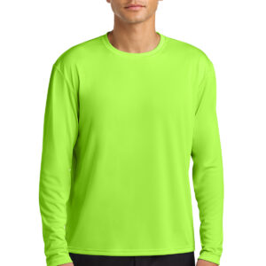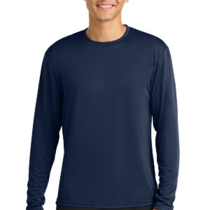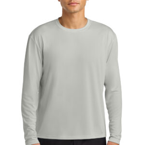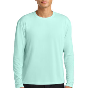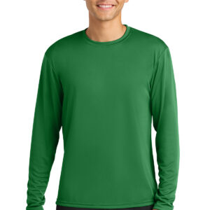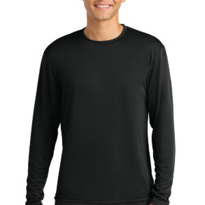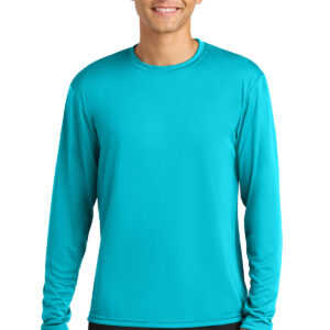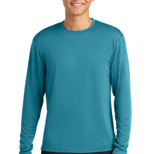 A top choice for sports and exercise, this long sleeve tee combines a comfortable fit with performance features such as moisture wicking and sun protection. 4-ounce, 100% recycled poly interlock Moisture-wicking Stain release Odor-resistant Snag-resistant UPF rating of 44+ Reinforced shoulder seams for durability Double-needle coverstitching on hem Tag-free label