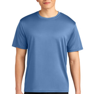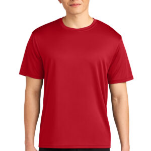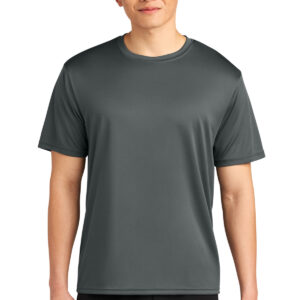 Lightweight and breathable for the toughest workouts, this tee features moisture wicking and stain release. 3.5-ounce, 100% recycled polyester Moisture-wicking Odor-resistant Stain release Reinforced shoulder seams for durability Double-needle coverstitching on neck and hem Tear-away label
