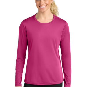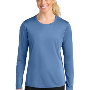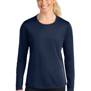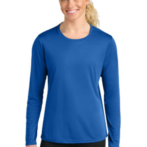 A top choice for sports and exercise, this long sleeve tee combines a comfortable fit with performance features such as moisture wicking and sun protection. 4-ounce, 100% recycled poly interlock Moisture-wicking Stain release Odor-resistant Snag-resistant UPF rating of 44+ Reinforced shoulder seams for durability Double-needle coverstitching on hem Tag-free label