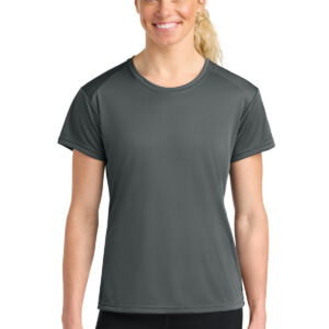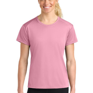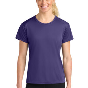 A top choice for sports and exercise, this tee combines a comfortable fit with performance features such as moisture wicking and sun protection. 4-ounce, 100% recycled poly interlock Moisture-wicking Stain release Odor-resistant Snag-resistant UPF rating of 44+ Reinforced shoulder seams for durability Double-needle coverstitching on hem Tag-free label