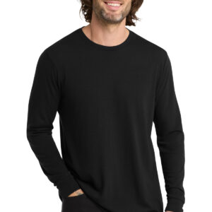 Feel your impact in this crazy-soft sustainable tee that uses an equivalent of up to 6 recycled plastic water bottles. 4.2-ounce, 50% recycled polyester, 25% organic ring spun cotton, 25% modal This product’s carbon footprint has been measured and reduced through a combination of preferred materials and investing in carbon offset projects though the ClimeCo Certified Product ™ Program 1×1 rib knit neck and sleeve cuffs Shoulder to shoulder taping Side seams Recycled tear-away label