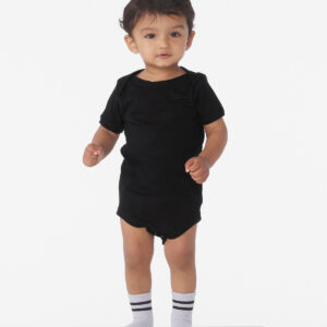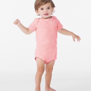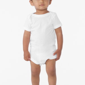 Envelope neck Side seamed Snap leg closure Tear-away label 4.2-ounce, 100% Airlume combed and ring spun cotton, 32 singles Athletic Heather: 90/10 Airlume combed and ring spun cotton/polyester Other Heathers: 52/48 Airlume combed and ring spun cotton/polyester