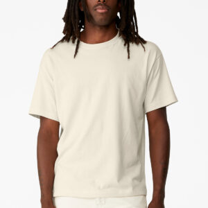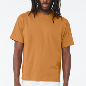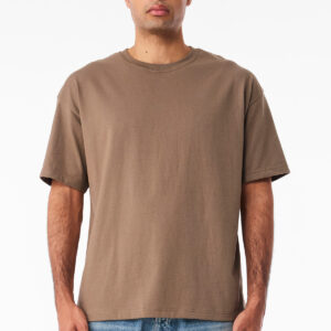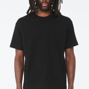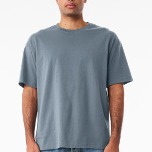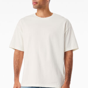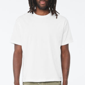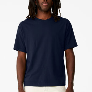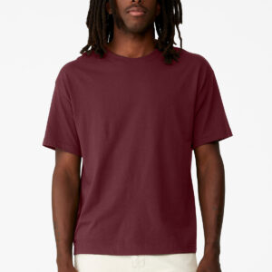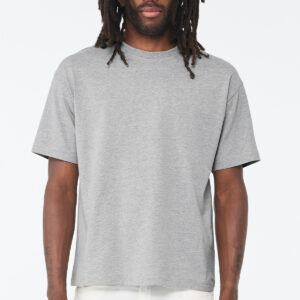 Boxy relaxed fit Drop shoulder Side seamed Tear-away label 6-ounce, 100% Airlume combed and ring spun cotton, 20 singles Athletic Heather: 90/10 Airlume combed and ring spun cotton/polyester