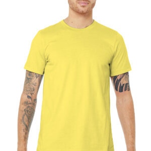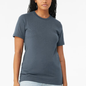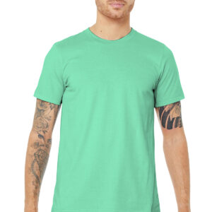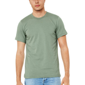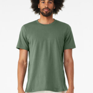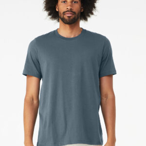 Retail fit Tear-away label Side seamed Shoulder taping Solid Colors: 4.2-ounce, 100% Airlume combed and ring spun cotton, 32 singles Ash: 99/1 Airlume combed and ring spun cotton/poly Athletic Heather/Black Heather: 90/10 Airlume combed and ring spun cotton/poly Heather CVC/Blend Colors: 52/48 Airlume combed and ring spun cotton/poly Prism: 99/1 Airlume combed and ring spun cotton/poly