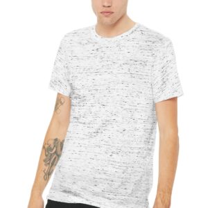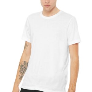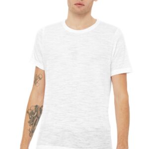 Retail fit Tear-away label Side seamed Solid Colors: 3.6-ounce, 52/48 Airlume combed and ring spun cotton/poly, 40 singles Marble Colors: 4-ounce, 91/9 poly/Airlume combed and ring spun cotton, 32 singles Vintage Slub Colors: 4-ounce, 50/37.5/12.5 poly/cotton/rayon, 32 singles