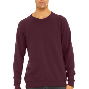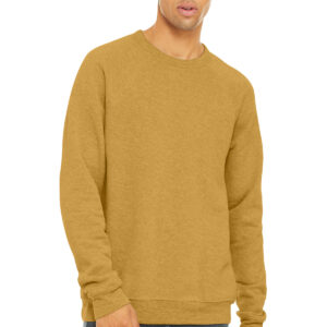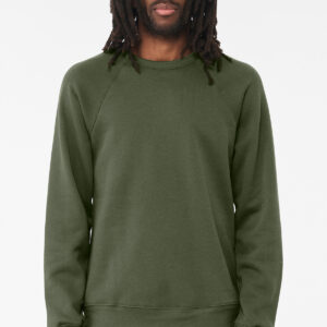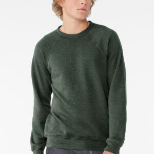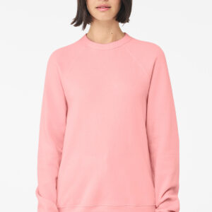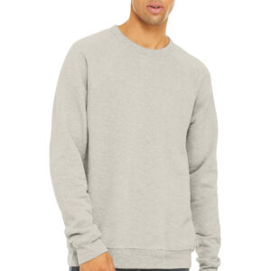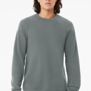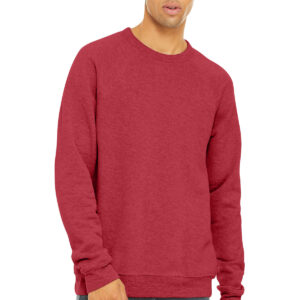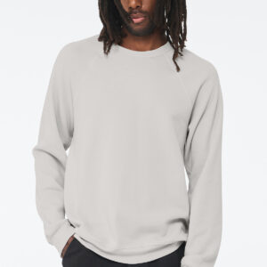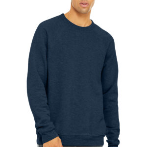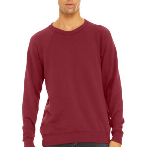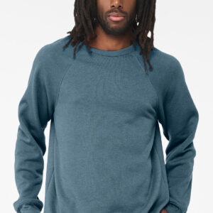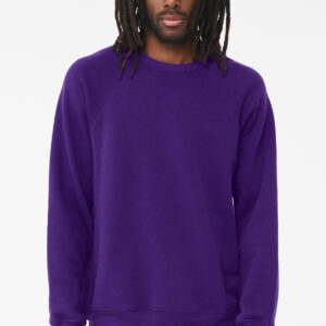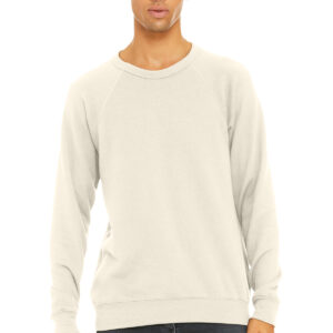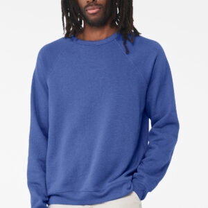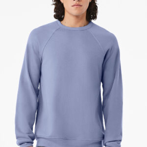 Retail fit Tear-away label Raglan sleeves Side seamed Rib knit cuffs and hem Solid Colors and Heather Colors: 8-ounce, 52/48 Airlume combed and ring spun cotton/poly fleece, 32 singles Triblend Colors: 8-ounce, 50/37.5/12.5 poly/Airlume combed and ring spun cotton/rayon, 32 singles Athletic Heather: 8-ounce, 90/10 Airlume combed and ring spun cotton/poly fleece, 32 singles