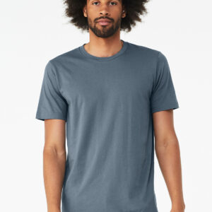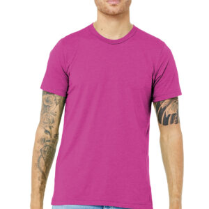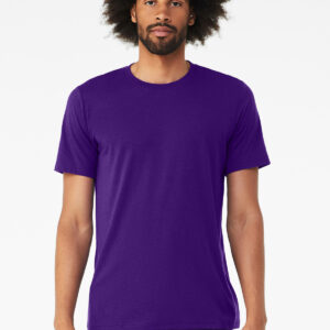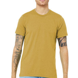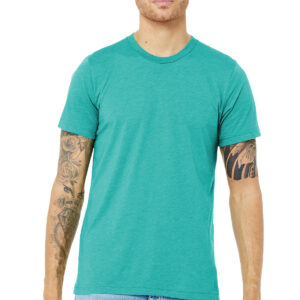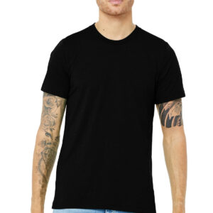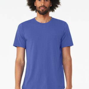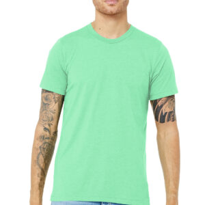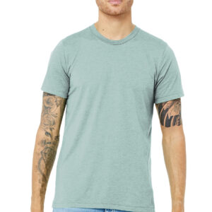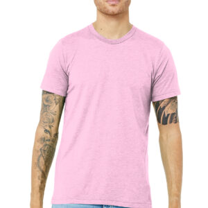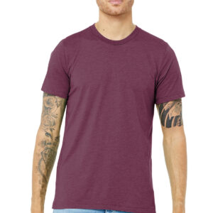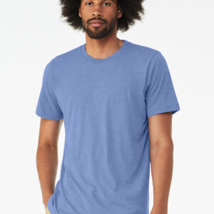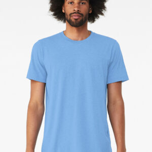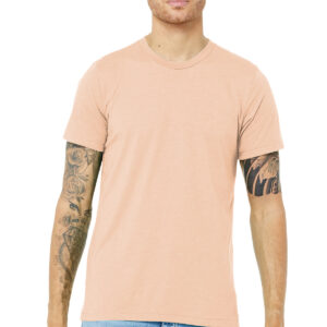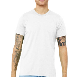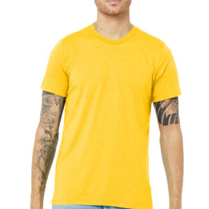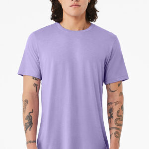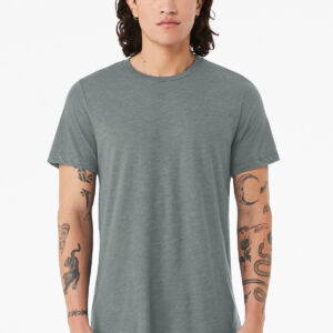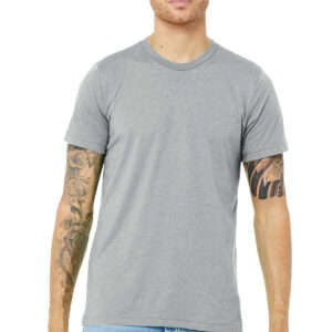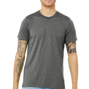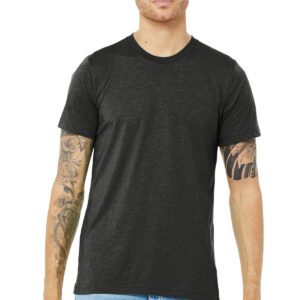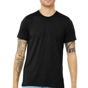 Classic fit Tear-away label Side seamed Triblend Colors: 3.8-ounce, 50/25/25 poly/Airlume combed and ring spun cotton/rayon, 40 singles Black Heather Triblend: 70/15/15 Airlume combed and ring spun cotton/poly/rayon
