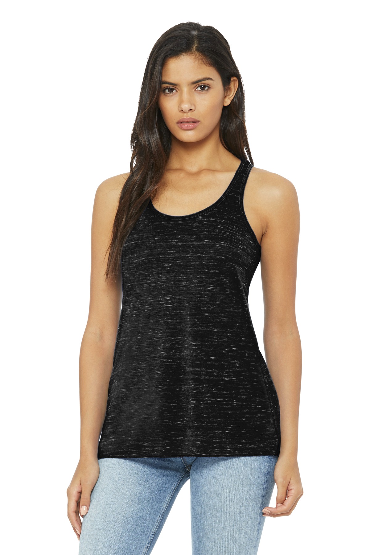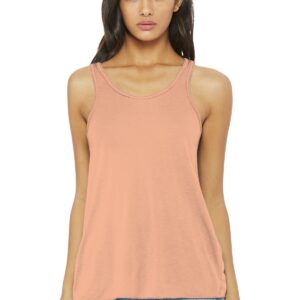 Relaxed, drapey fit Tear-away label Side seamed Shearing at racerback seam Merrowed bottom hem Solid Colors: 3.7-ounce, 65/35 poly/viscose, 32 singles Athletic Heather: 52/48 poly/viscose Black Heather: 80/20 rayon/poly Heather Navy: 70/30 rayon/poly Marble Colors: 3.5-ounce, 91/9 poly/Airlume combed and ring spun cotton, 32 singles Neon Pink: 3.7-ounce, 65/35 poly/viscose, 32 singles Vintage Slub Colors: 4-ounce, 50/37.5/12.5 poly/Airlume combed and ring spun cotton/rayon, 32 singles Solid Black Slub: 4-ounce, 40/30/30 poly/Airlume combed and ring spun cotton/rayon, 32 singles