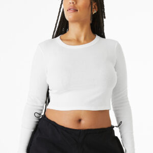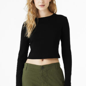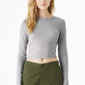 Stretch fit Crewneck binding 1×1 micro rib Side seamed Mid-length Tear-away label 5.4-ounce, 52/48 Airlume combed and ring spun cotton/polyester, 32 singles Athletic Heather: 90/10 Airlume combed and ring spun cotton/polyester