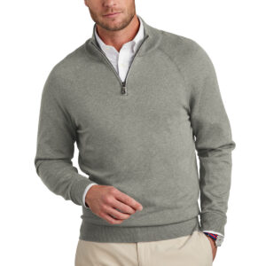 With a classic look and a comfortable fit, this sweater is sure to be a favorite throw-on-and-go option for any event. 70/30 pima cotton/nylon Full-fashioned throughout 1×1 rib neck, cuffs and hem 1/4-zip cadet collar Fully fashioned raglan sleeves Antique silver zipper pull with Brooks Brothers logo