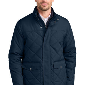 Blending contemporary with classic, this beautifully diamond-quilted coat delivers water-resistant performance and polished style for year-round layering. 65/35 polyester/cotton with a durable water-repellent (DWR) finish 3.5-ounce polyfill insulation Faux leather Brooks Brothers logo patch Self-fabric hanging loop Zip-through, rib knit lined collar Reverse coil 2-way front zipper with metal Brooks Brothers Golden Fleece logo zipper pull Storm flap Interior snap chest pocket Dual-entry hand pockets secured with flaps and Brooks Brothers logo snaps Decoration access pocket