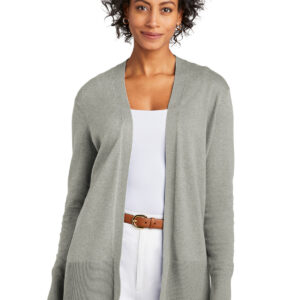 This timeless cardigan features an open front and longer length for easy wear-over-anything style. 70/30 pima cotton/nylon Full-fashioned throughout 1×1 rib neck Wide rib at cuffs and hem