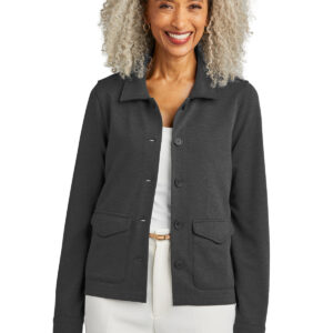 A structured double-knit style with a luxuriously soft hand, this versatile woman’s jacket adds a touch of utilitarian flair with a full button-front closure. The jacket can be cinched with a hidden waist drawcord for a more form-fitting look. 8-ounce, 76/22/2 polyester/rayon/spandex double-knit Faux horn buttons with Brooks Brothers logo Adjustable buttoned cuffs Hidden button-flap front pockets