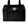 Strap on this soft-sided, seam-sealed cooler and keep up to 20 cans of your favorite beverage close at hand. Built for lunch at the jobsite or drinks by the river, this durable backpack cooler resists the elements and is perfect for work or the weekend. 600D rugged polyester Rain Defender ® durable water repellent (DWR) Seam-sealed to prevent ice from leaking as it melts Fully insulated main compartment can hold up to 20 12-ounce cans Insulated top compartment to separate food Front zippered pocket for condiments and utensils Comfort padded shoulder straps Mesh side pockets Carhartt label sewn on front Capacity: 18L Dimensions: 15’h x 11.5’w x 6.5’l; Approx. 1,098 cubic inches Note: Bags not intended for use by children 12 and under.