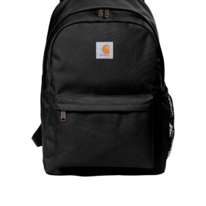 This no-nonsense pack is built for everyday hauling. Made of canvas with a water-shedding coating, it can easily handle any work or school commute. 500D polyester Rain Defender ® durable water repellent (DWR) Large main compartment with 15′ laptop sleeve Front zippered pocket with 2 mesh pockets and key fob Mesh side pocket Padded shoulder straps for comfort Carhartt label sewn on front Capacity: 21L Dimensions: 17.5’h x 12’w x 6’l Note: Bags not intended for use by children 12 and under.