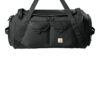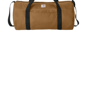 This versatile, water-resistant duffel can hold all your jobsite or travel must-haves. It comes folded inside a zippered utility pouch that can be reused to hold additional tools and gear. 500D polyester Rain Defender ® durable water repellent (DWR) Large zippered opening into main compartment Dual webbing haul handles with comfort grip Exterior slash pocket Adjustable shoulder strap with pad and Carhartt label Carhartt label sewn on front Includes a separate utility zippered pouch with Carhartt label sewn on front. Can be used for duffel storage or as a pouch for small items. Capacity: 40L Dimensions: 11’h x 21.5’w x 11’l; Approx. 2,441 cubic inches Note: Bags not intended for use by children 12 and under.