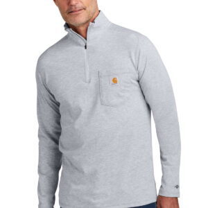 This midweight 1/4-zip tee fights sweat and is built for hard work thanks to Carhartt Force ® technology. Durable 5.75-ounce, 65/35 cotton/poly stretch plaited jersey knit 59/41 cotton/poly stretch plaited jersey knit (Heather Grey) 60/40 poly/cotton stretch plaited jersey knit (Carbon Heather) Carhartt Force ® technology wicks sweat, dries fast and fights odors FastDry ® technology keeps you cool for all-day comfort UPF 25+ Raglan sleeves to increase range of motion Contrast color neck tape Tagless neck label Smooth flatlock seams Carhartt label sewn on left chest pocket Carhartt Force ® labeling on left sleeve Relaxed fit