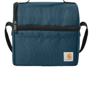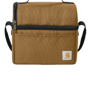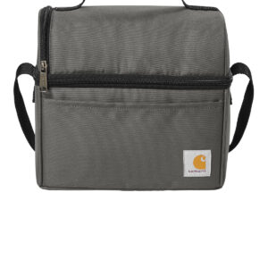 Whether you want your leftovers to stay warm ’til lunch or that six-pack to stay cool ’til clock-out, this seam-sealed, insulated cooler is up to the task. A separate top compartment helps you avoid crushed sandwiches and chips. 600D rugged polyester Rain Defender ® durable water repellent (DWR) Seam-sealed to prevent ice from leaking as it melts Insulated top compartment to separate food Fully insulated main compartment can hold up to six 12-ounce cans Front slash pocket Shoulder strap and top handle Carhartt label sewn on front Capacity: 11L Dimensions: 9’h x 10’w x 7’l; Approx. 671 cubic inches Note: Bags not intended for use by children 12 and under.
