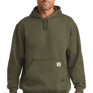 Sometimes Mother Nature can’t make up her mind. This sweatshirt works perfectly as a layer or by itself, allowing you to adapt with the weather. 10.5-ounce, 50/50 cotton/poly blend or 59/41 cotton/poly blend (Black, Carbon Heather, Moss, New Navy)* 50/50 cotton/poly blend (Brite Lime, Brite Orange) 70/30 cotton/poly blend (Heather Grey) Attached three-piece hood with drawcord closure Front hand warmer pocket Stretchable, spandex-reinforced, rib knit cuffs and waistband Carhartt-strong, triple-stitched main seams Carhartt label sewn on hand warmer pocket Loose fit *Please note: Select colors in Carhartt fleece are currently transitioning from a 50/50 cotton/poly blend to a 59/41 cotton/poly blend. Weight and fabric properties remain the same. Your order may contain a combination of both fabrics.