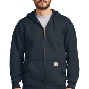 Carhartt’s Midweight Hooded Zip-Front Sweatshirt brings considerable comfort to cool-weather worksites. 10.5-ounce, 50/50 cotton/poly blend or 59/41 cotton/poly blend (Black, Carbon Heather, Moss, New Navy)* 50/50 cotton/poly blend (Brite Lime, Brite Orange) 70/30 cotton/poly blend (Heather Grey) Attached three-piece hood with drawcord closure Full-length brass front zipper Two front hand warmer pockets Stretchable, spandex-reinforced, rib knit cuffs and waistband Carhartt-strong, triple-stitching on pocket Carhartt label sewn on left hand warmer pocket Loose fit *Please note: Select colors in Carhartt fleece are currently transitioning from a 50/50 cotton/poly blend to a 59/41 cotton/poly blend. Weight and fabric properties remain the same. Your order may contain a combination of both fabrics.