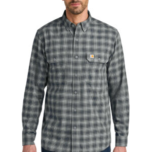 Proof that durability and flexibility can go hand in hand, this shirt easily transitions from work to weekend. Plus, it looks great tucked or untucked. 4-ounce, 98/2 cotton/elastane Rugged Flex ® stretch technology for ease of movement Garment washed for a soft finish and reduced shrinkage Spread collar Two chest pockets Two-button adjustable cuffs Carhartt label sewn on left chest pocket Relaxed fit