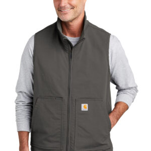 This soft shell vest combines iconic Carhartt looks with unbeatable weather protection. The nylon is 35% lighter than traditional duck but with twice the abrasion resistance. 8.1-ounce, 97/3 nylon/elastane 100% polyester stretch taffeta lining Rain Defender ® durable water repellent Wind Fighter ® technology tames wind Rugged Flex ® technology for ease of movement Reverse coil center front zipper with kissing welt Zip-through cadet collar Secure interior pockets Two lower front pockets Drop tail hem for added coverage Carhartt-strong, triple-stitched main seams Carhartt label sewn on left pocket Relaxed fit
