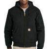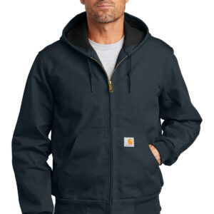 Whether you’re on a land survey or construction road crew, this hooded jacket is designed to keep you comfortable when the weather is iffy. 12-ounce, firm hand, 100% ring spun cotton duck canvas Wind Fighter ® technology tames wind 100% polyester thermal lining Attached thermal-lined three-piece hood with drawcord closure Full-length brass front zipper Two interior pockets: one zippered, one hook and loop Two large lower-front pockets Rib knit cuffs and waistband Carhartt-strong, triple-stitched main seams Carhartt label sewn on left pocket Loose fit