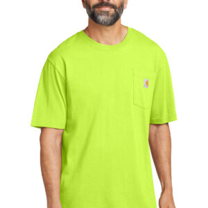 Carhartt’s bestselling, no-quit, original work shirt. A classic for 25 years. Durable 6.75-ounce, 100% cotton jersey knit 90/10 cotton/poly (Heather Grey) 60/40 cotton/poly (Other Heathers, Brite Lime, Brite Orange) Rib knit crewneck Tagless neck label Left chest pocket Side-seamed construction minimizes twisting Carhartt label sewn on left chest pocket Loose fit