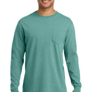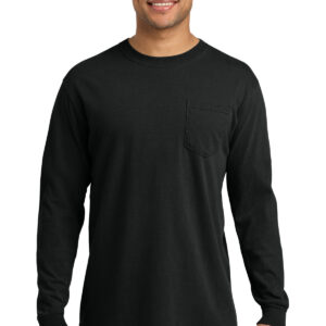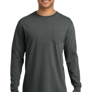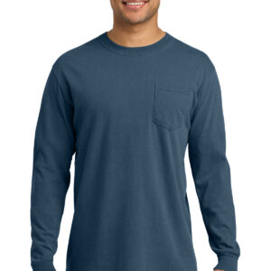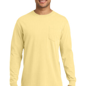 6.1-ounce, 100% ring spun cotton Soft-washed, garment-dyed fabric Double-needle collar Twill-taped neck and shoulders Twill label Single-needle left chest pocket with double-needle hem Rib knit cuffs Double-needle bottom hem