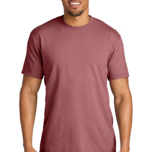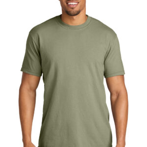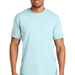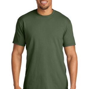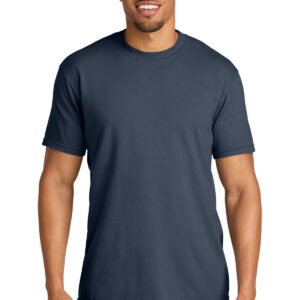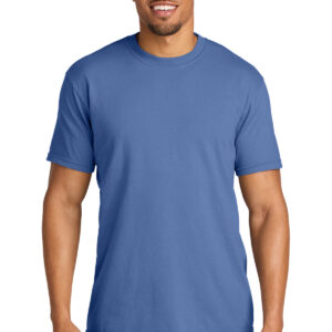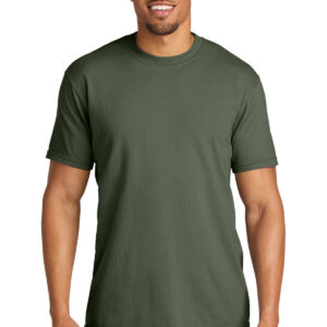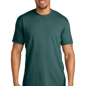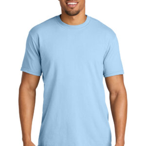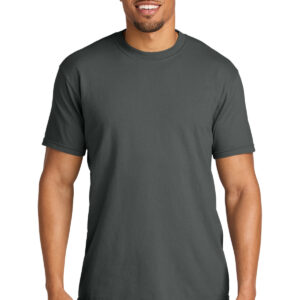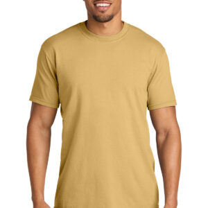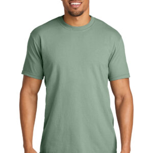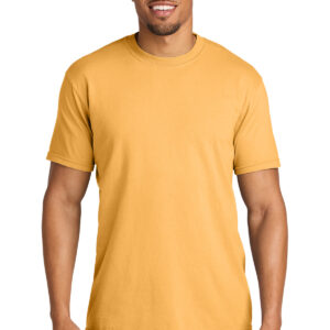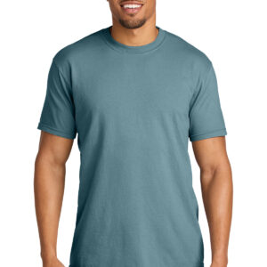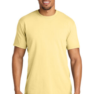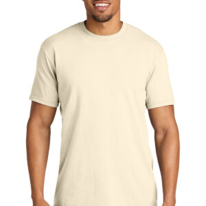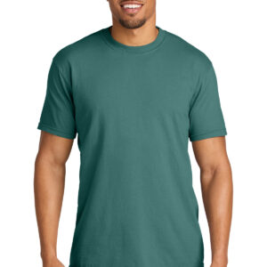 6.1-ounce, 100% US ring spun cotton Soft-washed, garment-dyed fabric Top-stitched, classic width rib collar Twill-taped neck and shoulders Twill label Relaxed fit, seamless body Double-needle collar and bottom hems The garment-dying process infuses each garment with unique character. Please allow for slight color variation in production and washing. Special consideration must also be taken when printing white ink on garment-dyed cotton.