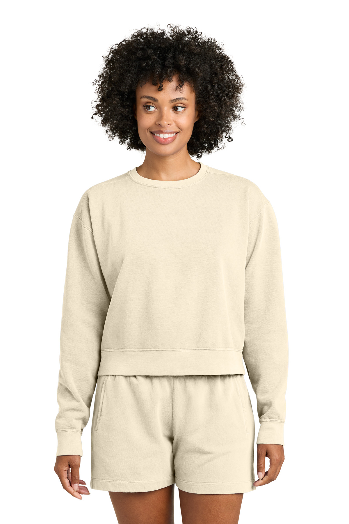 9.5-ounce, 80/20 ring spun U.S. cotton/polyester 3-end fleece; 100% soft ring spun U.S. cotton face for enhanced printability Garment-dyed for a lived-in feel Back neck patch for customization Rolled forward drop shoulder 1×1 rib knit cuffs and waistband Signature twill label Relaxed fit, side seamed The garment-dyeing process infuses each garment with unique character. Please allow for slight color variation in production and washing. Special consideration must also be taken when printing white ink on garment-dyed cotton. **