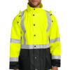 By combining popular soft shell outerwear technology with duck cloth, and an ultra-warm fleece interior,this jacket is a workwear must-have that helps you get the job done in any kind of weather. 100% cotton canvas shell with a DWR finish bonded to a water-resistant film insert and 100% polyester microfleece lining Metal front zipper Zippered chest pocket Zippered hand pockets Three interior pockets Adjustable metal snaps at cuffs