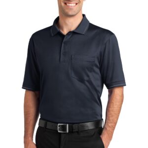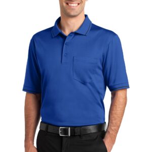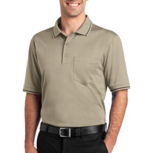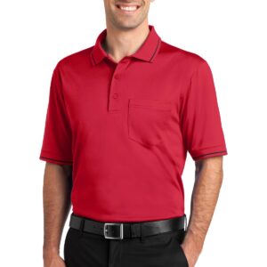 A left chest pocket and tipping add a bit of style to this hardworking essential that also defies snags, resists wrinkles, fights odors and wicks moisture. | 6.6-ounce snag-proof polyester Double-needle stitching throughout Tag-free label Flat knit collar and cuffs with tipping 3-button placket with dyed-to-match buttons Open hem sleeves Side vents Rental-friendly Due to the nature of 100% polyester performance fabrics, special care must be taken throughout the printing process.