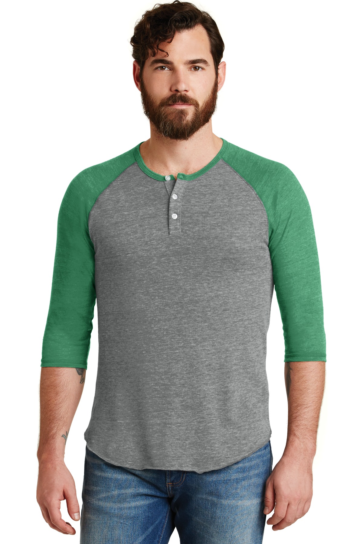 function instead. Please see Debugging in WordPress for more information. (This message was added in version 5.7.0.) in /var/www/html/www.uniforms.net/wp-includes/functions.php on line 6121Retro never goes out of style with this best-selling 3/4-sleeve henley. Features a slightly rounded hem and contrast sleeves and placket. 4.13-ounce, 50/38/12 poly/cotton/rayon 50% polyester (6.25% recycled), 38% cotton (6.25% organic), 12% rayon Slim fit 3-button placket Raglan sleeves Slight shirttail hem Eco-Jersey fabric infuses each garment with unique character. Please allow for slight color variations. Alternative Apparel reserves the right to prohibit the addition to any Alternative Apparel product any mark, name, design or logo that does not meet the high standards of the brand. Please contact your sales representative with questions. These products may not be resold without embellishment.