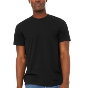 Retail fit Tear-away label Side seamed Shoulder taping 4.2-ounce, 52/48 Airlume combed and ring spun cotton/poly, 32 singles Athletic Heather & Black Heather: 90/10 Airlume combed and ring spun cotton/poly, 32 singles