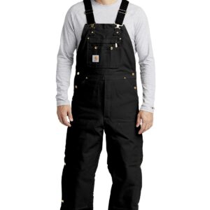 These overalls are quilt-lined to keep you warm on the job site. 12-ounce, firm hand, 100% ring spun cotton duck canvas Nylon lining quilted to midweight-polyester insulation Adjustable front-elastic suspenders with highly durable clasps Multi-compartment bib pocket with zippered closure Zipper fly Two large lower-front pockets Hammer loops on the left and right legs Chap-style double-front construction Double-front knee construction with cleanout bottoms that can accommodate knee pads Ankle-to-thigh leg zippers with storm flaps and snap closures Cordura ® back-leg kick panels Two reinforced back pockets Metal rivets at vital stress points Carhartt-strong, triple-stitched main seams Carhartt label sewn on bib pocket