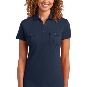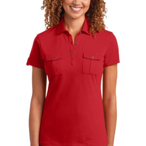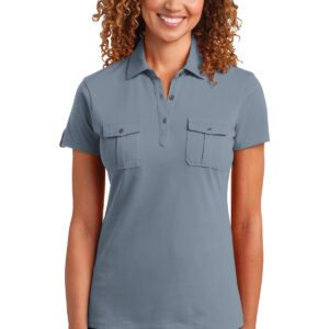 Double chest pockets liven up this wardrobe essential. | 5.3-ounce, 60/40 ring spun combed cotton/poly, 24 singles Self-fabric collar 3-button placket with metal buttons Tab detail at sleeve hems Side vents