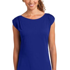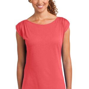 A gathered shoulder detail gives this soft tee standout style. | 3.5-ounce, 60/40 ring spun combed cotton/modal, 40 singles