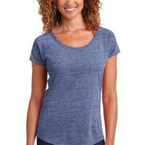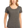 Heather texture makes this essential even more charming. | 4.4-ounce, 50/38/12 poly/ring spun cotton/rayon, 30 singles Rolled and tacked sleeves Due to the heat sensitivity of tri-blend fabrics, special care must be taken throughout the printing process. Consult your decorator or ink supplier for best printing practices.