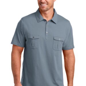 Double chest pockets add undeniable interest to this workplace or weekend must-have.| 5.3-ounce, 60/40 ring spun combed cotton/poly, 24 singles Self-fabric collar 3-button placket with metal buttons Side vents