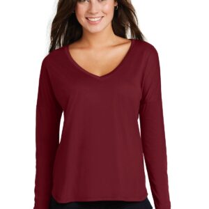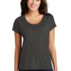 Soft and flowy, this tee complements any look.| 3.9-ounce, 70/30 poly/rayon, 40 singles Tear-away label Relaxed fit Back neck tape Drop shoulder Curved hem with elongated side vents Slightly dropped back hem Please note: This product is transitioning from woven labels to tear-away labels. Your order may contain a combination of both labels.