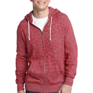 Two-toned marled yarn gives this hip hoodie a colorful twist. | 8.3-ounce, 60/40 cotton/poly fleece White drawcord and inside trim Black drawcord and inside trim on Marled Black Metal zipper