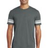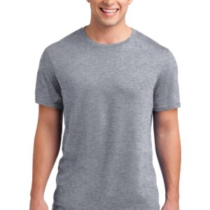 This tee has a well-loved look thanks to our garment wash treatment. | 3.7-ounce, 100% ring spun combed cotton, 40 singles 90/10 ring spun combed cotton/viscose (Heather Grey)