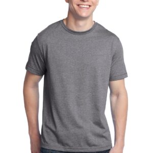 Get triple the softness in this vintage-looking crewneck. | 4.4-ounce, 50/38/12 poly/ring spun cotton/rayon, 30 singles Tri-Blend fabric infuses each garment with unique character. Please allow for slight color variations. Due to the heat sensitivity of tri-blend fabrics, special care must be taken throughout the printing process. Consult your decorator or ink supplier for best printing practices.