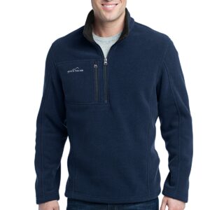 Hit the trail or the streets in warmth and style. Contrast rolled top collar, zippered chest pocket, reverse coil contrast zipper, open cuffs and an open hem. Contrast Eddie Bauer logo embroidered on right chest. Made of 12-ounce, 100% polyester fleece which incorporates Low Impact Technology ™ for enhanced softness and performance.
