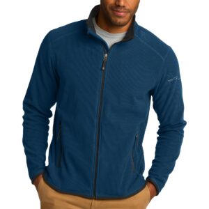 The ultimate in laid-back comfort and warmth, our Vertical Fleece has a classic corduroy look for texture and character. Contrast reverse coil zippers, chin guard. Contrast tricot binding on cuffs and hem. Contrast rolled top collar, contrast Eddie Bauer logo embroidered on left sleeve. Made of 13.8-ounce, 100% polyester fleece.