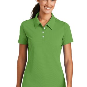 Achieve the pinnacle of performance in this style that pairs a rich diamond texture with Nike Sphere Dry moisture management technology. The ultramodern fabric has a textured inside surface that minimizes cling by allowing only a portion of the shirt to come in contact with the skin. Perfect for any occasion, this exceptional shirt is designed for maximum movement and increased air flow. Finished with a self-fabric collar and open hem sleeves. Tailored for a feminine fit with grosgrain ribbon inside the four-button placket. Pearlized buttons. The Swoosh design trademark is embroidered on the placket. Made of 6.35-ounce, 89/11 polyester/spandex.