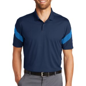 Take command of the course or the office in this polo that has a modern stripe frame design across the back and wrapped around each sleeve. Dri-FIT moisture management technology delivers true performance. Details include a flat knit collar, two-snap placket and open hem sleeves. A contrast heat transfer Swoosh design trademark is on the left sleeve. Made of 5.3-ounce, 100% polyester Dri-FIT fabric.